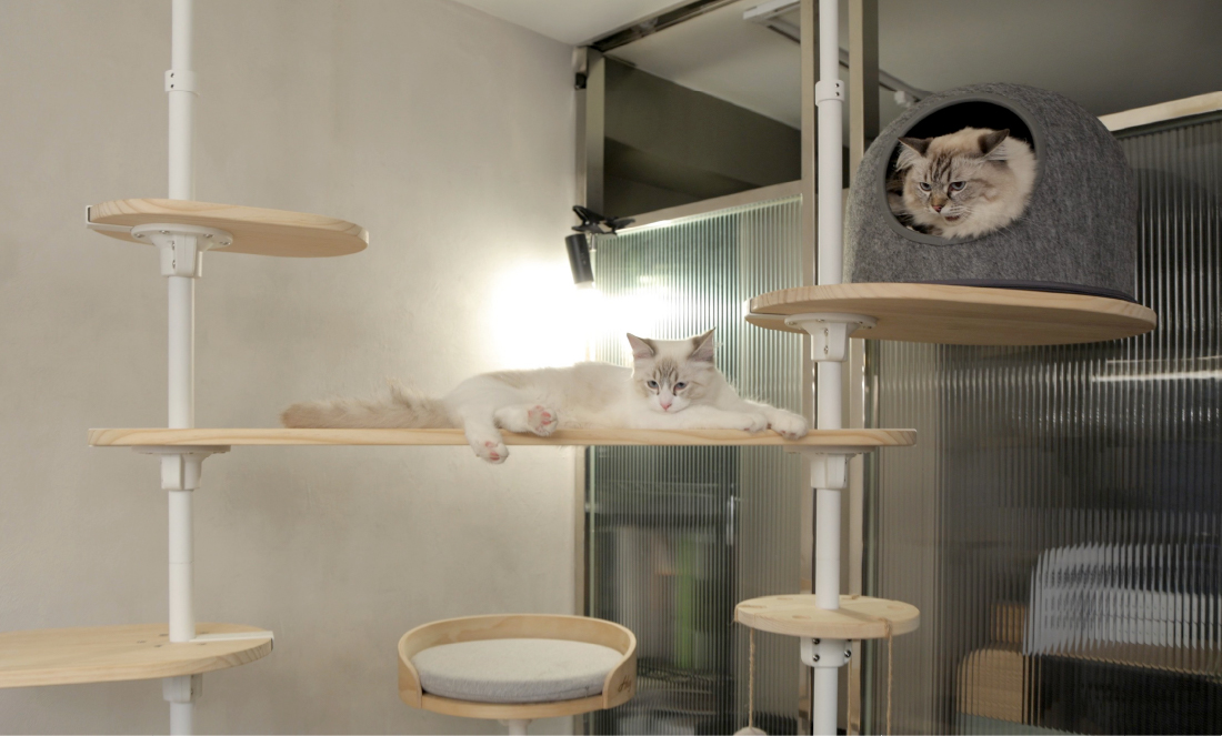 E 貓的空間可以有更多開放性和互動性的設施,讓他們可以自在展示、和家人交流: